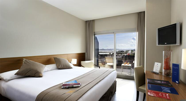 El hotel es enorme y moderno ¡nos encanta! y a pesar de estar completo nos dieron una habitación a media mañana porque era de categoría superior ¡qué emoción! hacía tanto tiempo que no disfrutábamos del hotel en sí... y encima teníamos un buen terrazón, 2 hamacas, vistas a las salinas y al mar. Fue un puntazo porque yo he estado en ese hotel varias veces y nunca nos dieron una habitación con esa terraza.