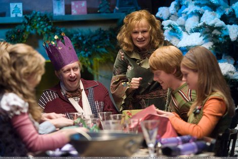 Molly Weasley de Harry PotterLa señora Weasley es la indicada para pasar estas festividades. Hace suéteres personalizados con la inicial de tu nombre, cocina para toda la familia, simplemente es perfecta.