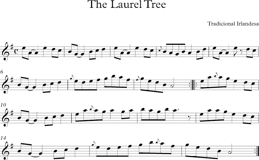 The Laurel Tree. Canción Tradicional Irlandesa. Partitura que englobaremos dentro del nivel avanzado.