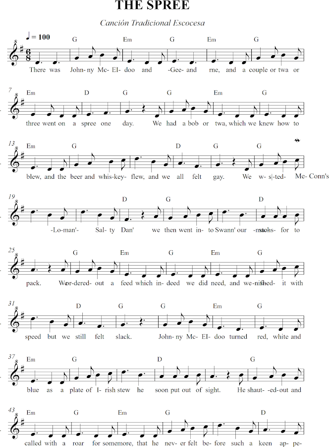 Canción Tradicional Escocesa. The Spree. Partitura para flauta dulce que podemos trabajar con el alumnado a partir de 5º d Primaria con los niños.