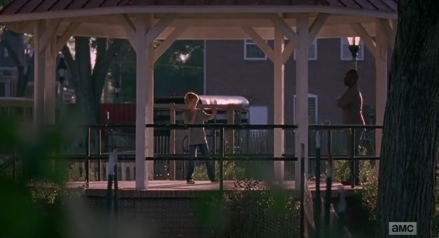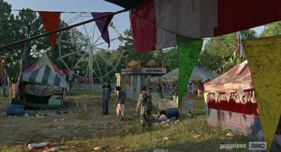 No es una serie o una película de zombis si no aparece un parque de atracciones (o en este caso una feria típica americana), y ahí es donde se va a desarrollar la mayor parte del episodio. El tema aquí es que Rick no quiere volver, está desesperado por un respiro y alejado de todo siente como que sus problemas desaparecen. Michonne obviamente intenta encaminarle sin agobiarle.