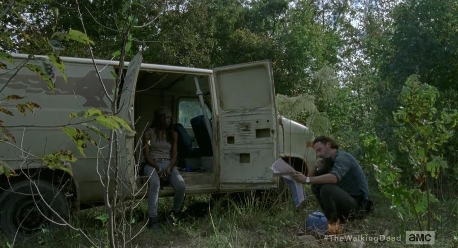 Vemos un poco más en profundidad la relación entre los dos, que a mí personalmente sigue sin convencerme mucho. Ambos son líderes y tienen sus fortalezas y debilidades. Michonne teme perder a Rick, y en general teme perder a cualquiera. Y Rick por su parte cada vez está más desquiciado y se va volviendo poco a poco más temerario, menos cuidadoso.