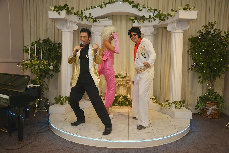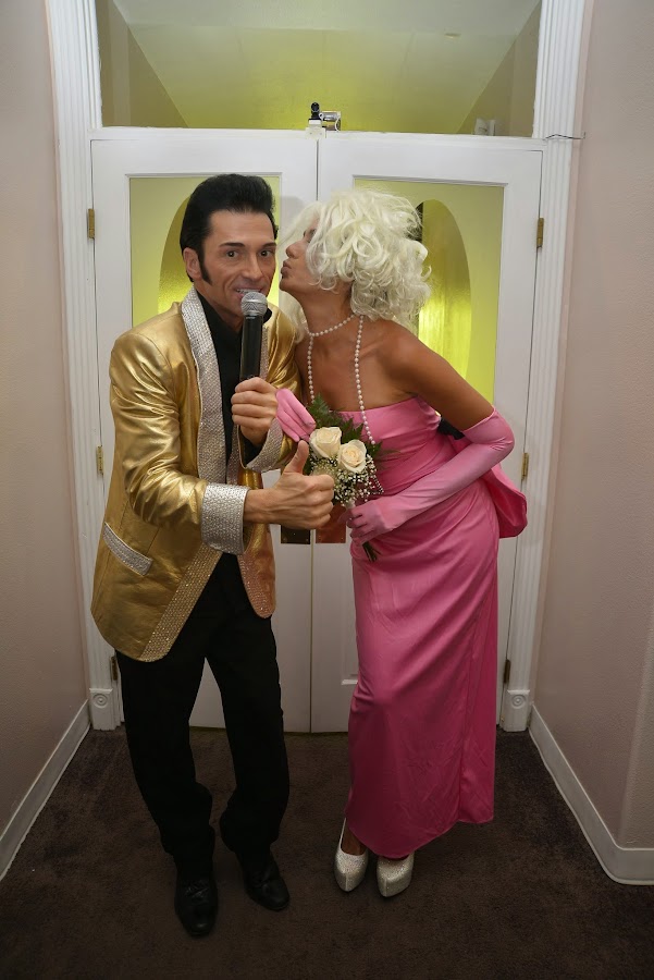 Tras bajarme de la limusina frente a Elvis Chapel convertida en uno de mis personajes de cine favoritos, el propio Rey del Rock en persona me acompañó hasta el altar, un escenario mágico para tal celebración en el que me esperaba mi marido vestido como Elvis Presley para volver a darnos los votos de amor.