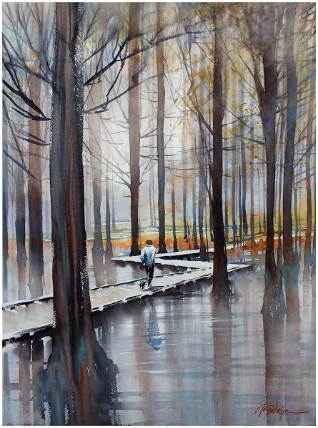 donde se dedica a tiempo completo a la obra en el medio de la acuarela.