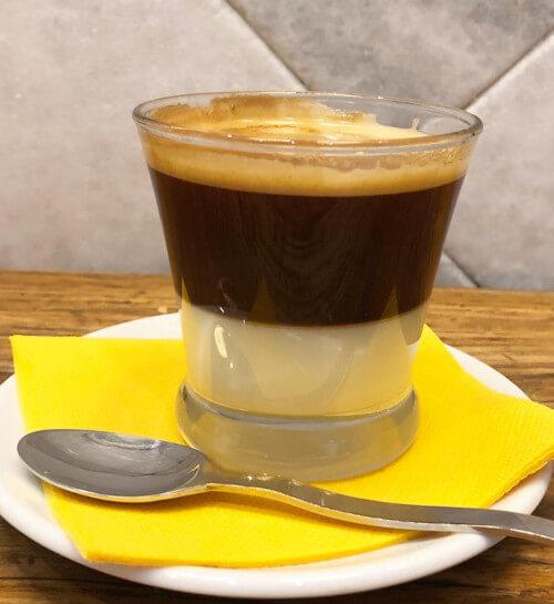 Café con leche manchado o latte macchiato: vaso de leche al que se le añade muy poco café solo o expreso.
