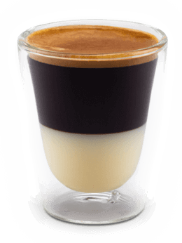 Un café, corto, cremoso y fuerte. Muy aromático y de intenso sabor.