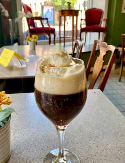 Bebida hecha con café y whisky calientes, azúcar y nata montada (o crema) fría, servida en una copa de cóctel.