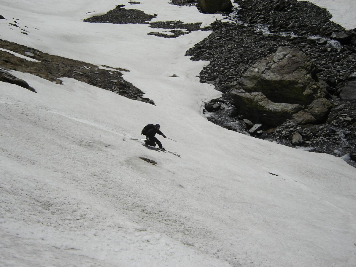 Nieve primavera Consiste en que la capa superior del manto nivoso esta fundida por el la acción del sol y las capas inferiores están duras, seria todo lo contrario a la nieve costra. Es una nieve muy fácil de esquiar, pues tenemos una capa superficial muy blandita de unos 3 0 4 centímetros, en la cual el esquí agarra muy bien y una capa dura que impide que nos hundamos en la nieve. El secreto de esta nieve es estar en el sitio justo a la hora exacta para cogerla en su punto, pues buenas características tienen unas horas, si no podremos encontrar nieves muy duras hielo o nieves muy blandas y húmedas nieve papa. Dentro de las nieves de Primavera encontramos la nieve podrida. este tipo de nieve, es una nieve antigua con mucho aire en su interior a diferencia de la nieve mantequilla que esta compactada, lo que ocurre al esquiar esta nieve es que al romper la capa superficial nos hundimos hasta la cintura en una nieve muy pesada e imposible de esquiar, cuando encontramos este tipo de nieve lo ideal es madrugar mucho y esquiar antes de que la capa superficial se descongele.