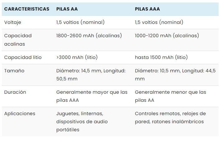 Voltaje y capacidades de las pilas más comunes: AA y AAA