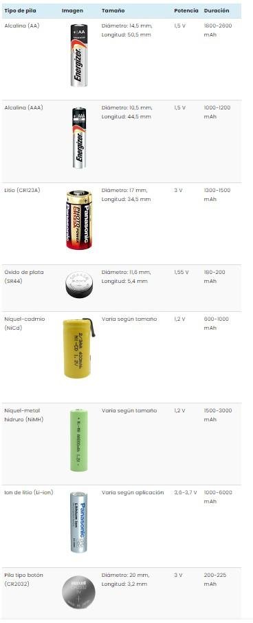 Los 17 tipos de pilas y sus características