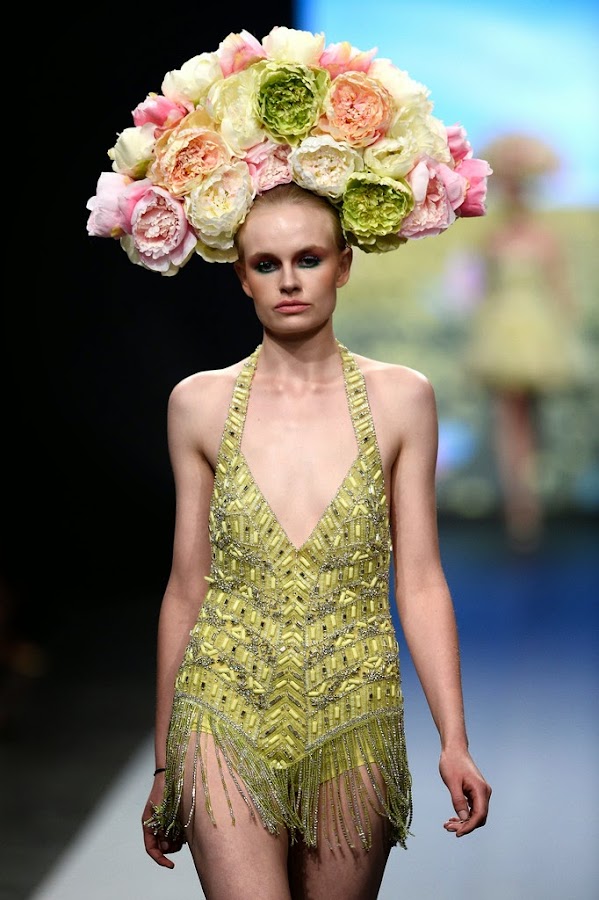 [ Guineviere van Seenus con un tocado de Philip Treacy. ]