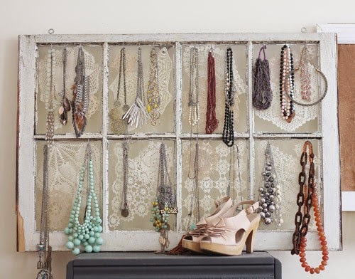 Hace dos semanas estuve en casa de una amiga y me llamó la atención un mueblecito que tiene en su dormitorio; un pequeño armario que por fuera es un espejo pero luego lo abres y es un organizador de complementos: collares, anillos, pulseras, pendientes...