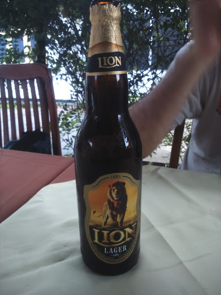 La cerveza escasea. De hecho sólo bebimos esta que sale en la foto durante todo el viaje. La botella era gigante, eso sí :P