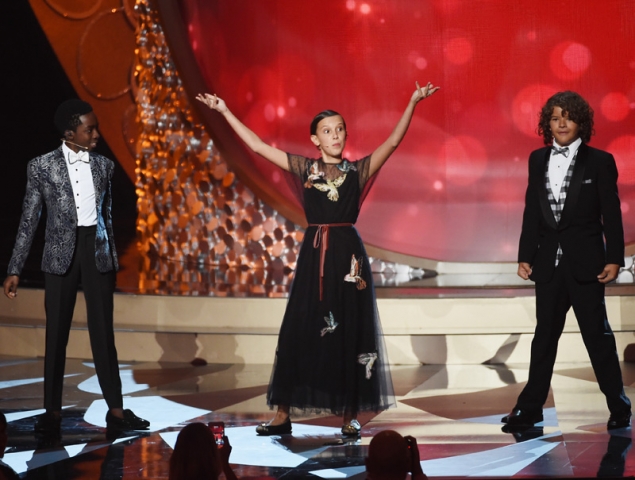 ¿Lo mejor de los Emmy 2016? Los niños de la nueva serie revelación de Netflix, Stranger Things. A mí me tienen enamorada, ¿y a vosotros? Mirad qué versión de Uptown Funk se marcaron. Y eso no fue lo único. Los pequeños se pudieron a repartir "meriendas" entre los invitados vestidos como en la serie y sobre sus bicis. ¡Más monos!
