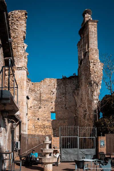 En la foto de la portada y en ésta puedes ver la espadaña como único resto de este convento, y a sus pies la terraza de un restaurante que te invita a relajarte y tomar un baño de sol rodeado de historia.