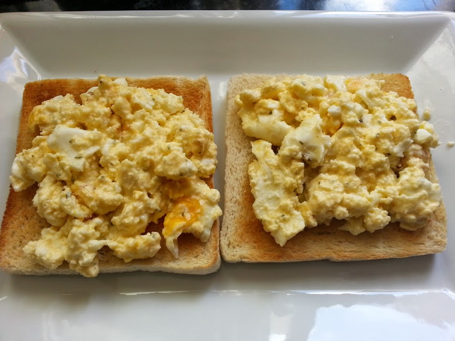 Tostamos las rebanadas de pan y cubrimos con el huevo.