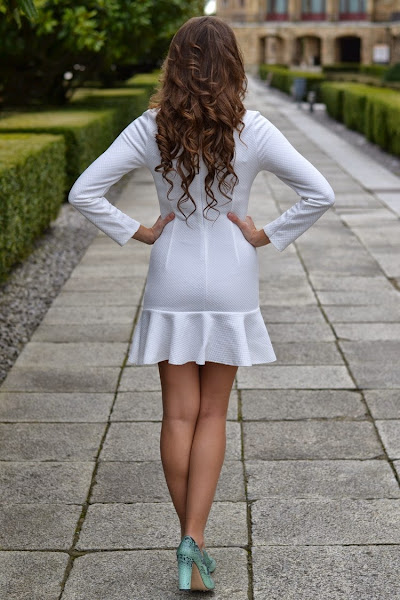 Precisamente, en esta última me he inspirado para crear mi look de hoy, compuesto por un sencillo minivestido blanco, en una línea súper depurada, con manga larga y volantito en el bajo que remata la falta, como único adorno, de la tienda online tubellezaaqui.com que, si recordáis, se asemeja bastante al de la firma Fetiches Suances elegido por la it girl en presentación ante los medios de la segunda temporada de la serie de Antena 3, Velvet, allá por el mes de Octubre. Su precio, 19,99 Euros (mucho más asequible que el original, de 189 Euros).