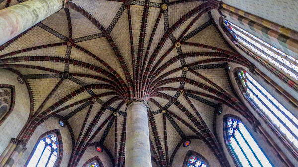 Excepcional columna de 22 nervaduras que sostiene el coro poligonal conocida como La Palmera