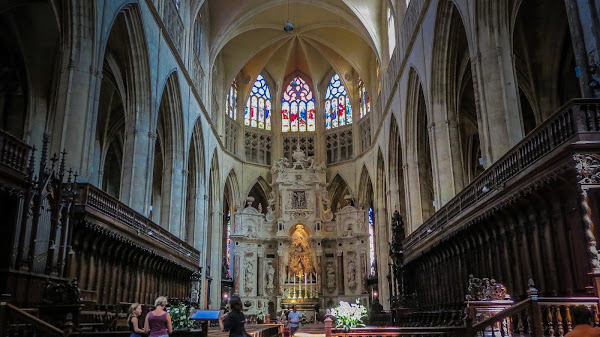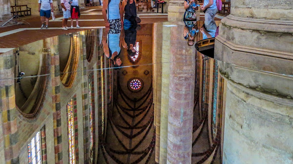 Como puedes ver en la foto siguiente lo más original del edificio es que presenta dos partes muy diferentes: una parte románica en la zona de la nave llamada Raymondine, y una parte gótica en el coro. Ambas iglesias fueron unidas en el siglo XVI por Jean dOrleans. El coro es el doble de grande que la nave románica, y está situado no de una forma continua.