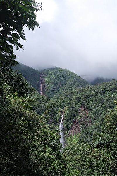 Hoy os enseño las fotos de la semana pasada que fuimos hasta "Les Chutes du Carbet" conocidas como las cascadas más bonitas de la isla( y no me extraña) son tres cascadas, esta vez fuimos hasta la primera la más difícil de acceso , tras 1h50min de marcha en cuesta llegamos y allí estaba imponente con 115metros de altura, no hay palabras para describir el poder de la naturaleza y la sensación de libertad allí arriba... creo que las fotos hablan por si solas, espero que os gusten y apuntarlo como visita obligatoria para los que vengáis por aquí.