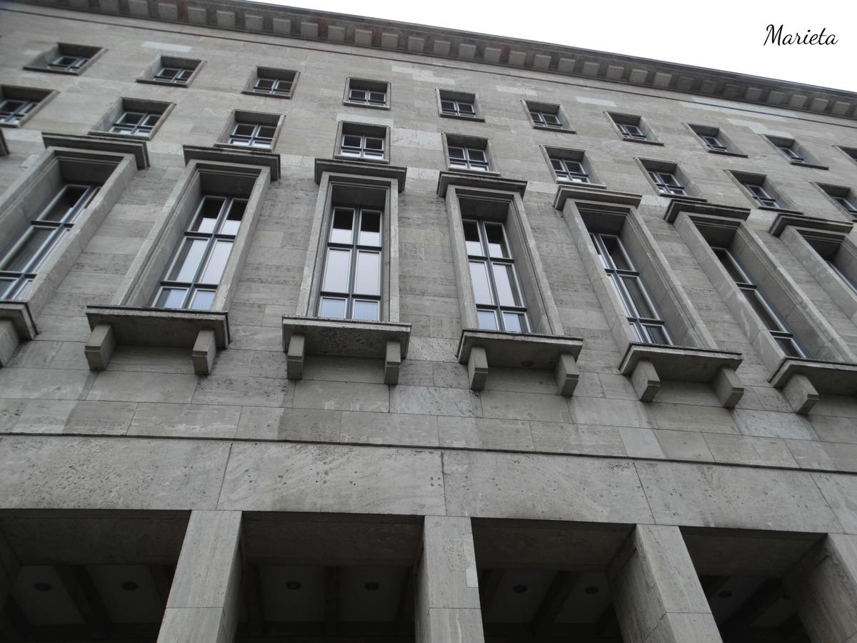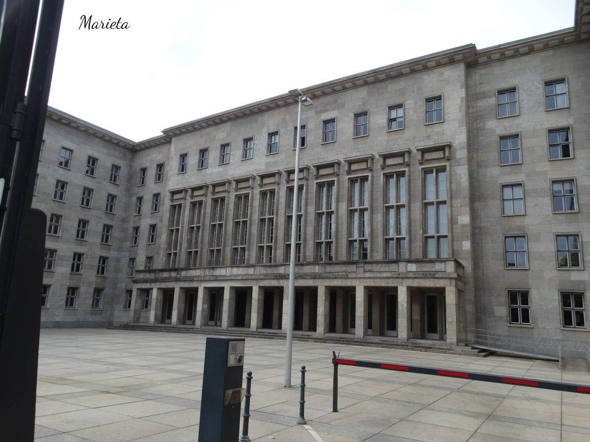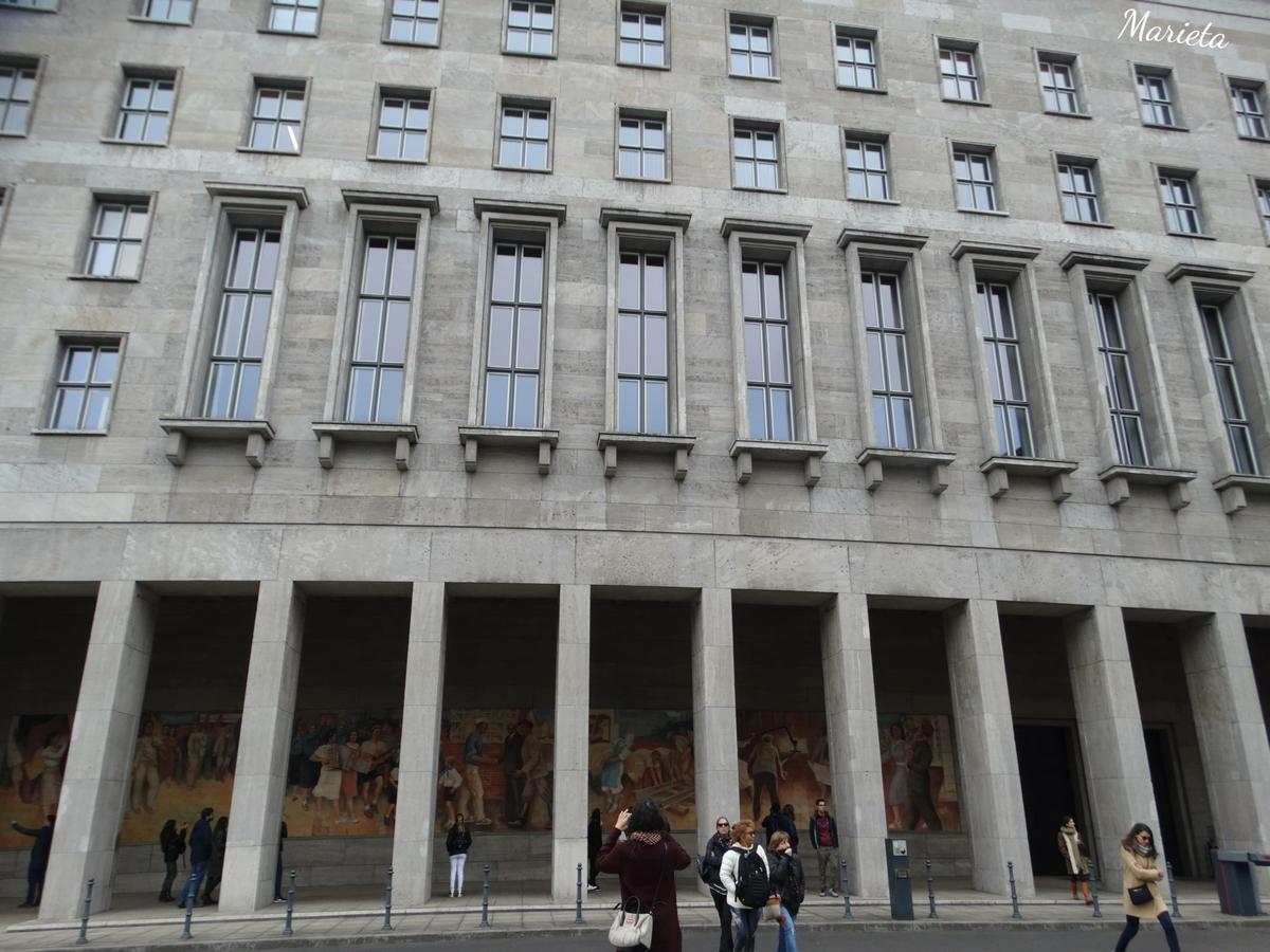 Siguiendo la visita, a pocos metros nos encontramos (en el cruce de Wilhelmstrasse y Leipzigerstrasse) con un lugar cargado de simbolismo, la Plaza del levantamiento popular de 1953 (Platz des Volksaufstandes von 1953) lugar donde se produjo la sublevación obrera contra el gobierno de la RDA, que fue violentamente reprimida por la policía y el grupo de fuerzas soviéticas en Alemania. El imponente edificio, que es ahora el Ministerio de Hacienda, fue la sede de la Luftwaffe dirigida por Hermann Göring. Es el mayor edificio nazi que sobrevivió a la II Guerra Mundial, y por su tamaño sigue siendo hoy en día uno de los más grandes edificios de oficinas de Europa.