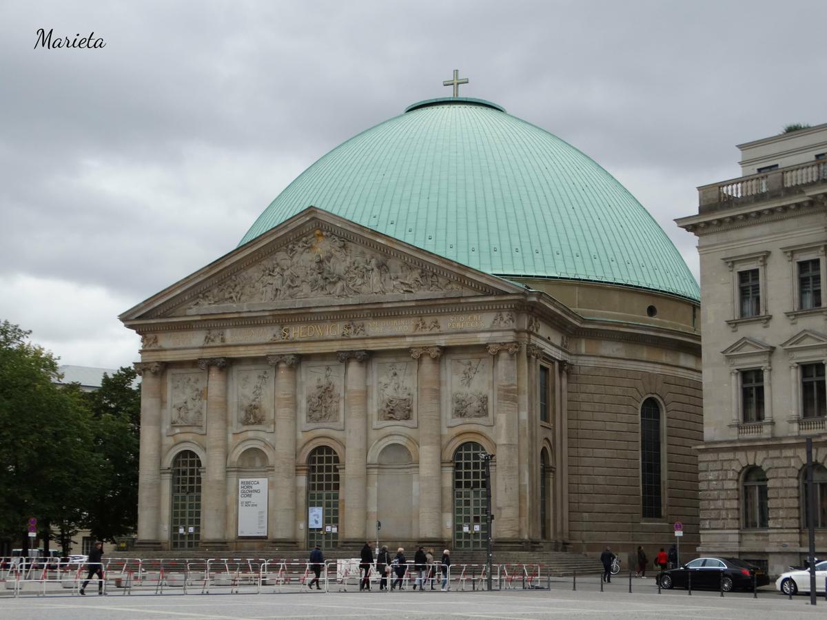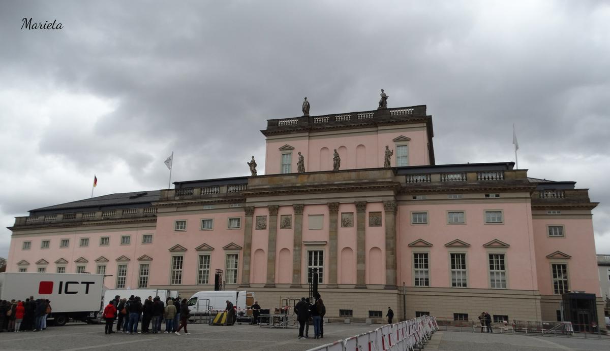 La plaza está rodeada de imponentes edificios: el de la Ópera Estatal, la Catedral católica de Santa Eduvigis y la Universidad Humboldt, entre otros.