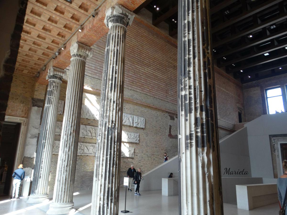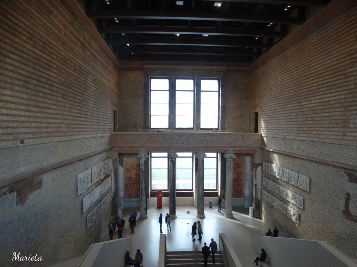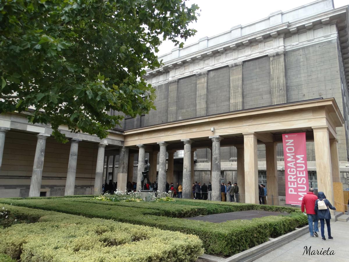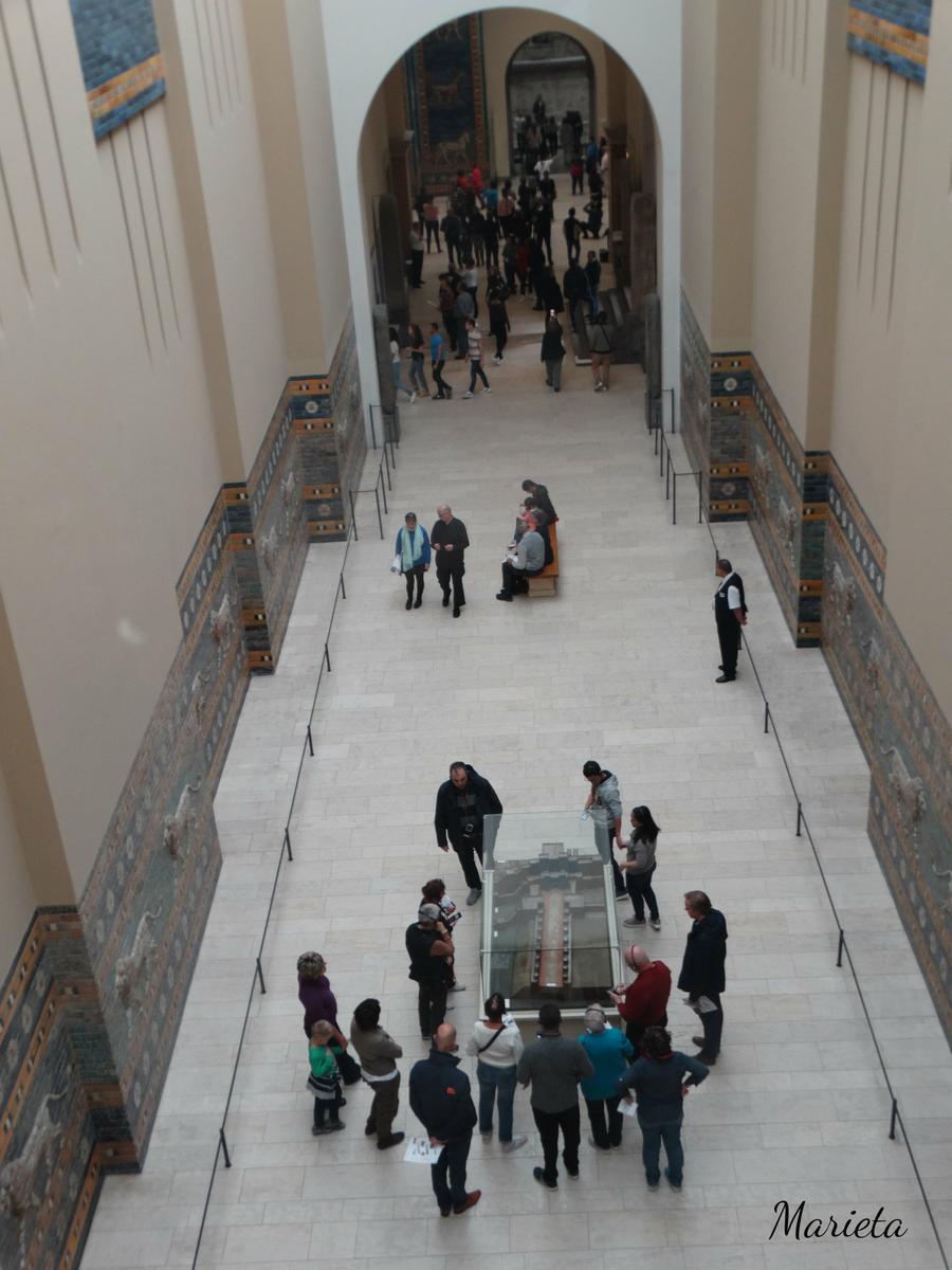 Empezamos nuestra visita por el Museo de Pérgamo, en él no sólo se exponen esculturas, sino edificios enteros procedentes de las excavaciones de arqueólogos alemanes en Asia, durante el siglo XIX. Debe su nombre al Altar de Pérgamo que lamentablemente no pudimos ver debido a las obras que se están realizando en buena parte del museo, y que no concluirán hasta posiblemente el 2023 ( la excusa perfecta para repetir visita a Berlín ). Sí pudimos admirar la grandiosa Portada del Mercado de Mileto ( del siglo II d.C.), la maravillosa Puerta de Isthar (550 a.C.), La Avenida Procesional con el friso de los leones y el Toro de Adad (siglo VI a.C.)