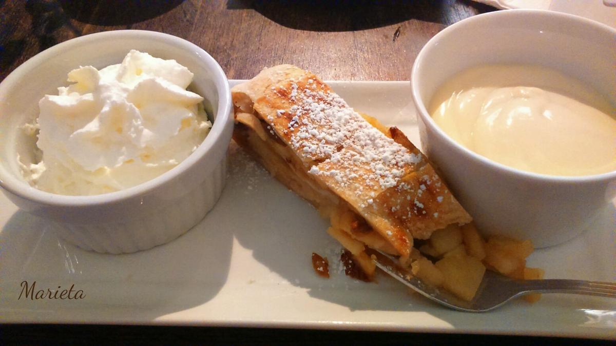 Click to view slideshow. Concluida la visita al museo Pérgamo, nos dirigimos ahora a disfrutar del Museo Nuevo, pero antes de satisfacer el espíritu vamos a satisfacer el cuerpo porque se acerca la hora de comer y el hambre ya nos ronda. Decidimos hacer la parada para repostar en la propia cafetería del museo, Allegretto Cafè, muy recomendable por cierto, los camareros encantadores y ¡el apfelstrudel riquísimo!