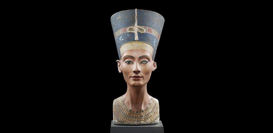 Busto de la reina Nefertiti. Nuevo reino, XVIII Dinastía, Amarna, Egipto, año 1340 a.C. Fotografía de la propia web del museo