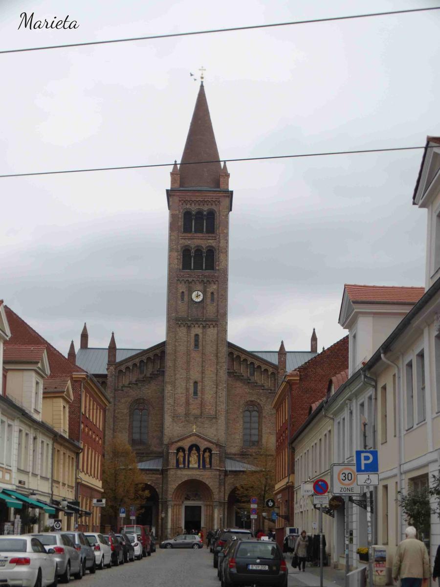 Nos dirigimos después a la calle peatonal más emblemática, Brandenburguer Strasse, para comer algo. Antes hacemos una breve parada al principio de la misma para visitar la Iglesia Católica de San Pedro y San Pablo.