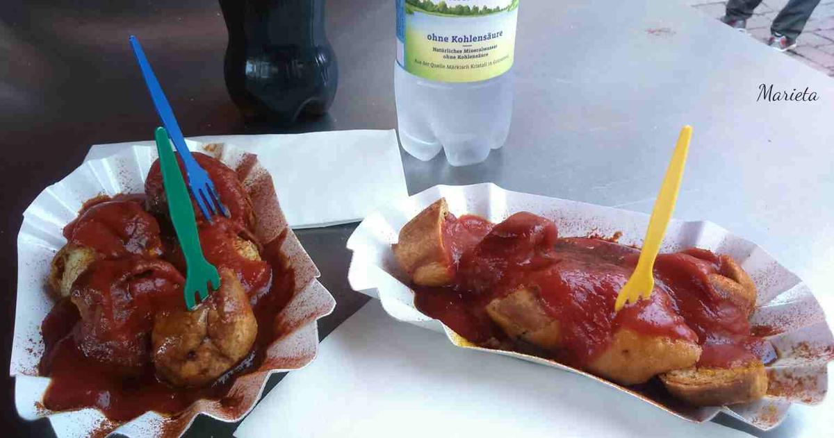 Y siguiendo el consejo de “allí donde fueres, haz lo que vieres”, Manuel y yo que somos los más intrépidos del grupo, nos tomamos sendos Currywurst en un puesto callejero como manda el manual del buen guiri