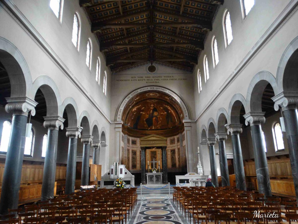 Nos encaminamos hacia el Palacio de Sanssouci, a la entrada del gran parque nos encontramos la preciosa Iglesia neorománica de La Paz y nos detenemos un momento para visitarla.