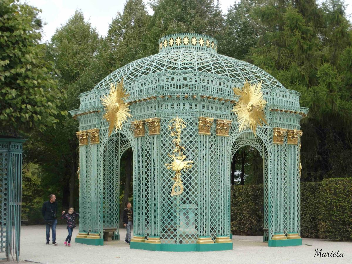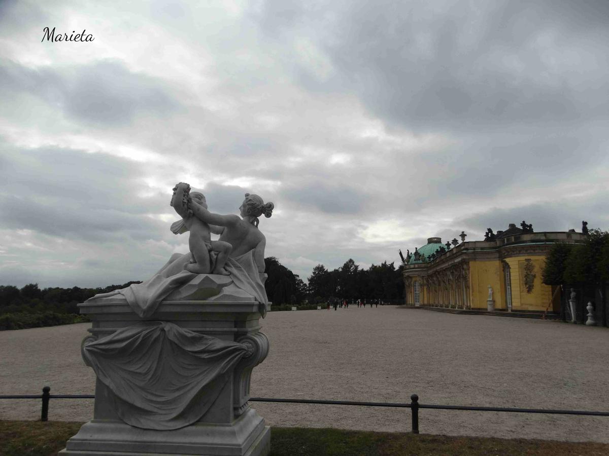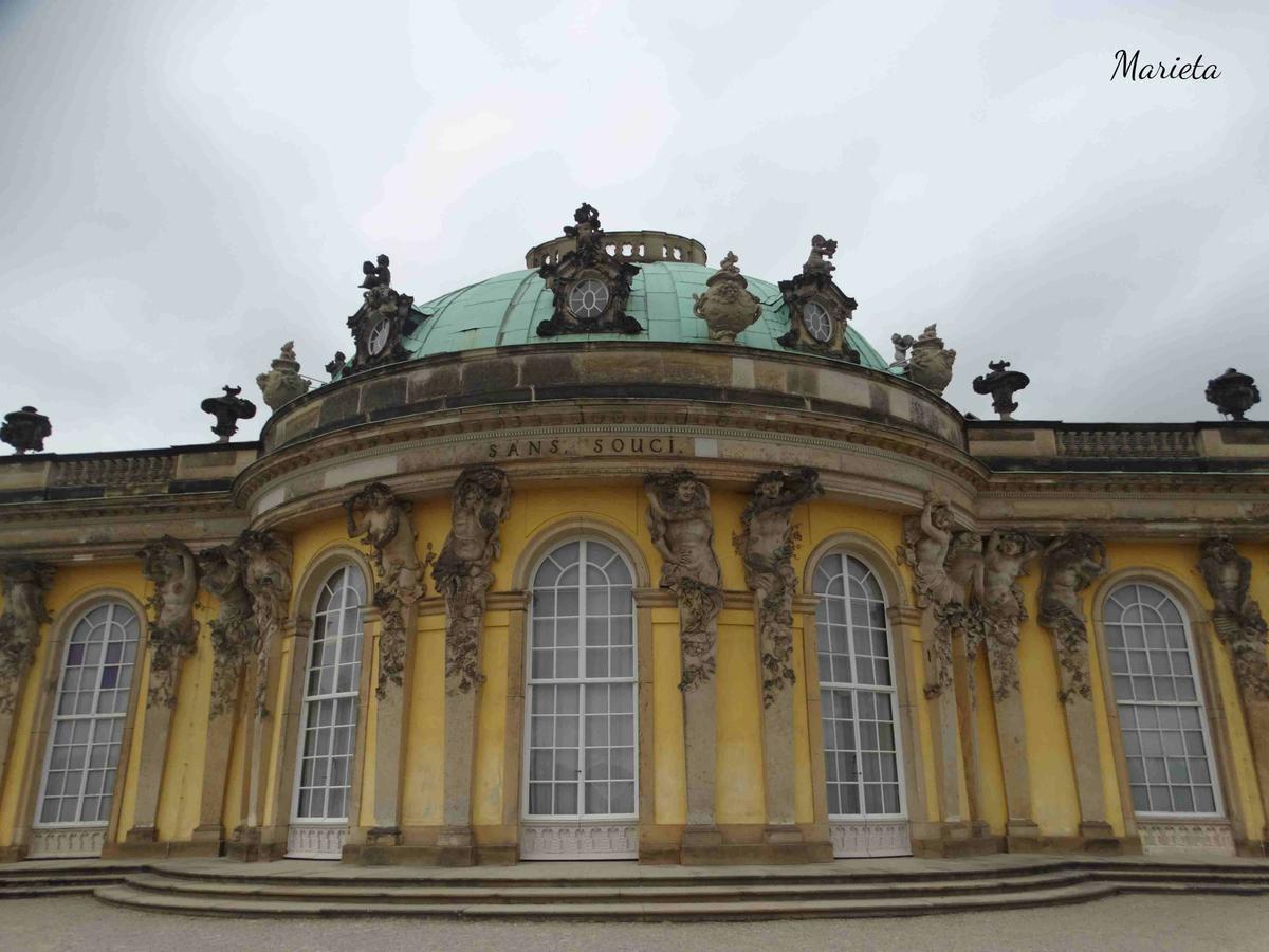 Federico II el Grande, cuatro años después de subir al trono, mandó aterrazar un monte desértico, plantarlo de vides y construir en el escalón superior un palacio, cuyo nombre Sin Preocupaciones, Sanssouci, expresaba sus deseos de retiro. Su arquitecto, Knobelsdorff, hizo un brillante ejercicio de estilo rococó.
