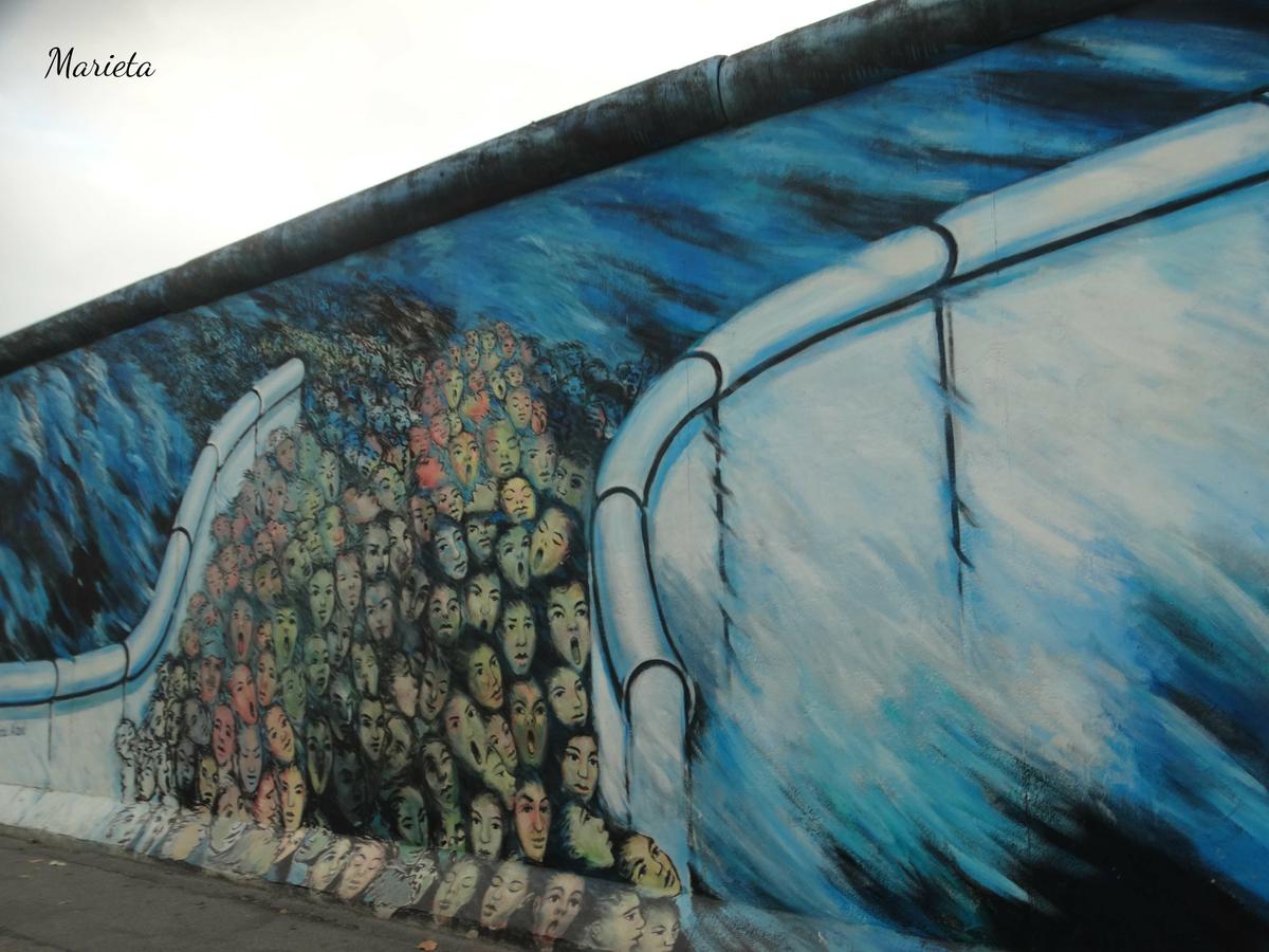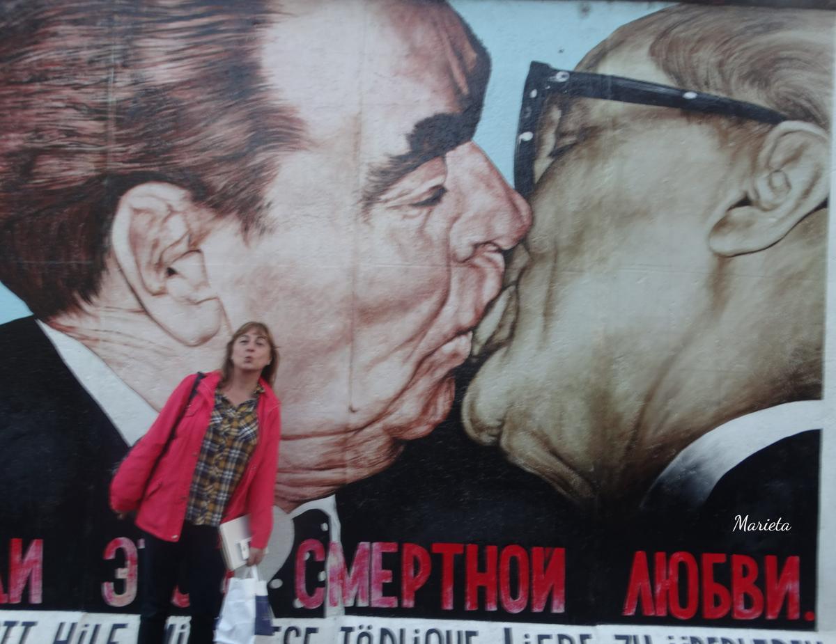 En 1990 fue dividido en parcelas que se asignaron a 118 artistas de 21 países para que las pintaran. Quizás el más famoso de los graffitis sea el “Beso fraterno” (Bruderkuss) que se dan en los labios Brezhnev y Honecker, obra del pintor moscovita Dimitri Vrúbel.