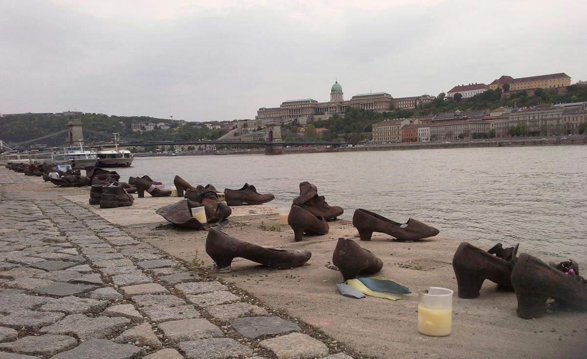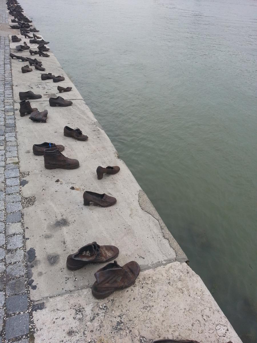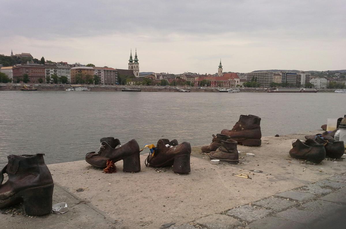 Es en el recorrido de este tramo donde nos encontramos con la impactante y emotiva obra de los artistas húngaros Can Togay y Gyula Pauer. “El monumento de los zapatos”… sesenta pares de zapatos de hombres, mujeres y niños, realizados en hierro colado y situados en el borde mismo del muelle, que rinden homenaje a las victimas del holocausto de la segunda guerra mundial. Cientos de víctimas inocentes a las que se les ordenaba descalzarse para luego ser asesinadas de un modo cobarde, con un disparo en la espalda y que eran después arrojadas a las aguas del Danubio.