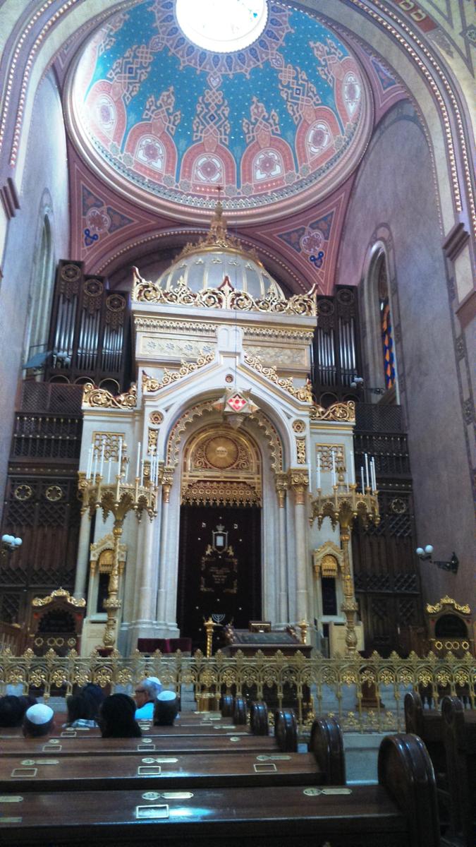 Comenzamos por la Gran Sinagoga, entre otras cosas porque la tenemos al lado de nuestro hotel. Además tenemos la fortuna de contar con una guía en exclusiva, ya que sólo nosotras tres estamos en el grupo de las visitas en español de primera hora. Así que nos ponemos en manos de Judith, una mujer todo atención y simpatía, y nos dejamos deslumbrar por toda la historia que alberga este complejo formado por la sinagoga, el museo y cementerio judíos y el templo de los héroes.