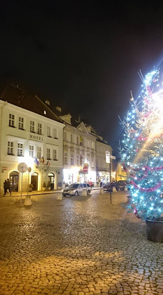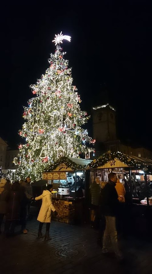Plaza Vieja de Praga (Staromestské námestí). La verdad es que la plaza estaba preciosa con la decoración Navideña, llena de turistas que visitan la ciudad en esta época y llena de bulliciosas casetas con artesanía, bufandas, gorros y puestos de comida y bebida llama la atención un dulce navideño típico el Trdelník, está hecho con masa de harina enrollada en un pincho de madera y aromatizado con canela, ¡riquisimo!.