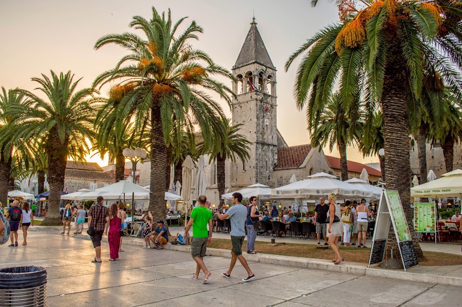 Trogir se une a la península por un puente peatonal y otro para vehículos. En el lado opuesto de la pequeña isla, se une por otro puente a una gran isla que hay a poca distancia.