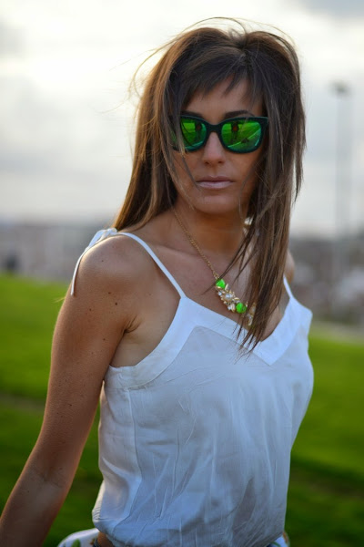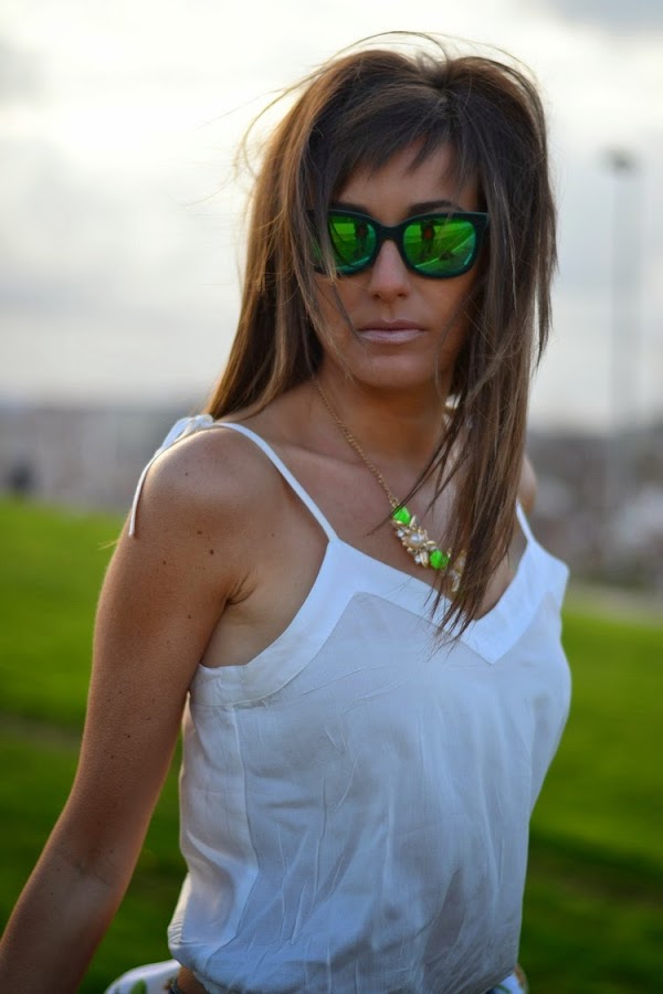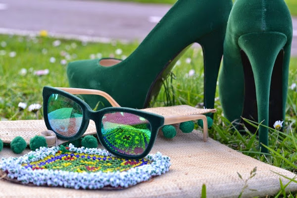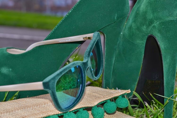 Y, como última novedad, mis nuevas MAXVER bicolor. Fijaos en el frontal de la montura, ¿no os parece de lo más original? Este modelo encaja a la perfección, tanto con el ante de los zapatos como con las borlas verdes del clutch, en beige, como las varillas de las gafas. Además, adoro los cristales espejados y sin son en verde, como estos, más todavía. Pero, lo mejor de todo, sin duda, su precio: 29 Euros.