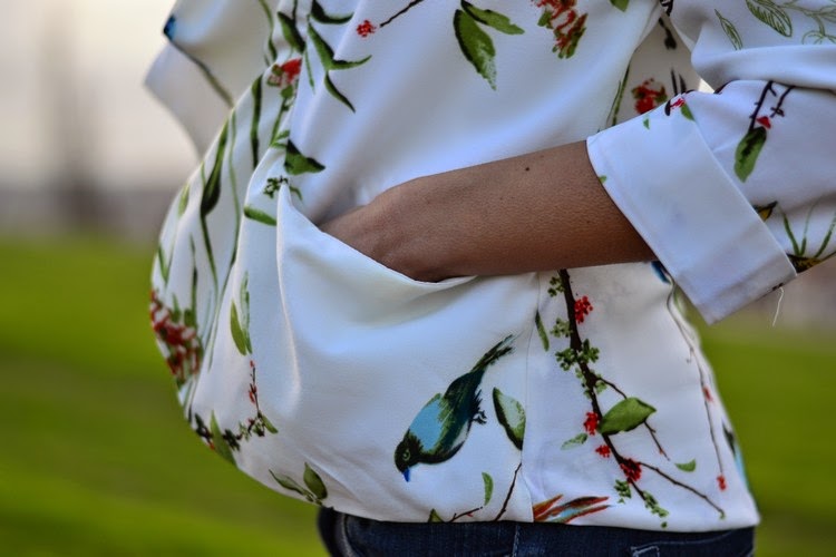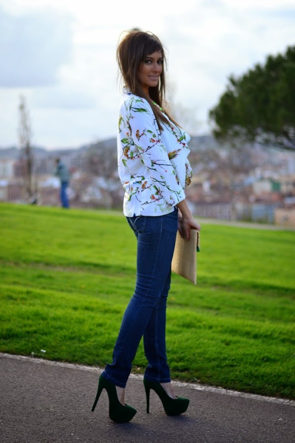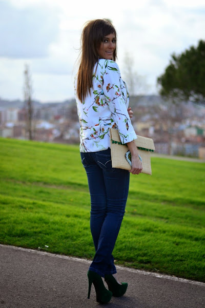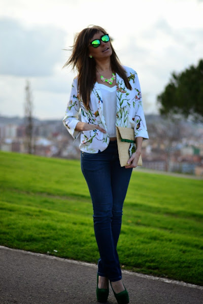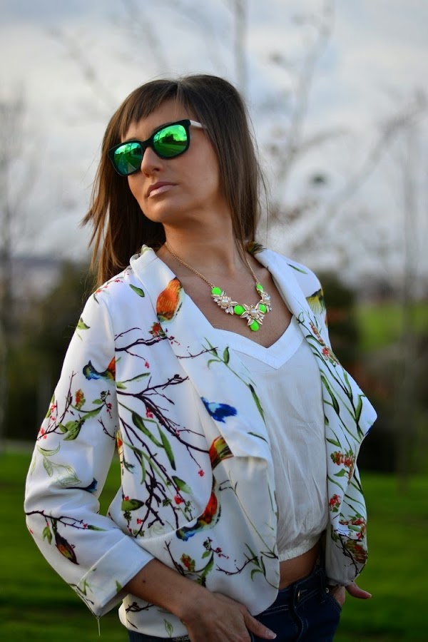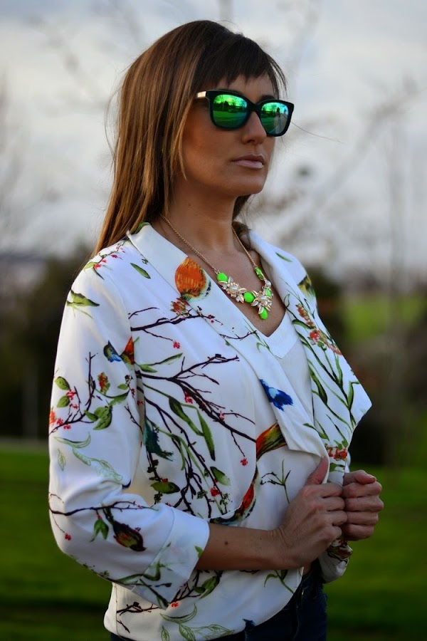 Con la entrada de la nueva estación y pese a las bajas temperaturas que aún tenemos por aquí por el norte, yo ya me he anticipado a la tendencia más veraniega y, un año más, me he vuelto a subir al carro del trópico, recuperando su vegetación de cara a la actual temporada, representada en esta alegre chaqueta; una prenda de lo más refrescante que hoy se lleva todo el protagonismo gracias a las flores y los pájaros tan exóticos añadidos sobre el fondo blanco de la tela.