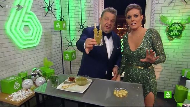 La Sexta, que el año pasado revolucionó las redes sociales con las transparencias de Pedroche, no se complicó mucho y recurrió al chef Alberto Chicote y a Andrea Ropero, de La Sexta Noche. La periodista confesó que no le gustan las uvas y Chicote le preparó doce bolitas de melón que ella se comió encantada.