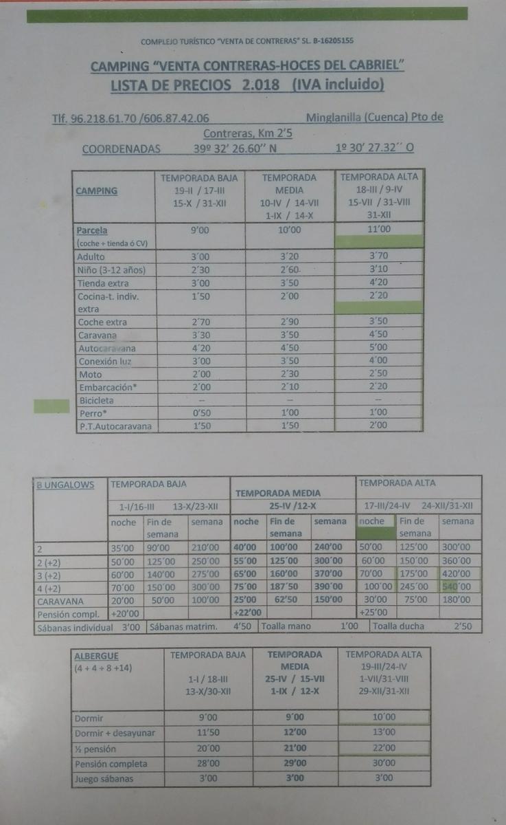 Elegimos el camping de Venta de Contreras por disponer de albergue.