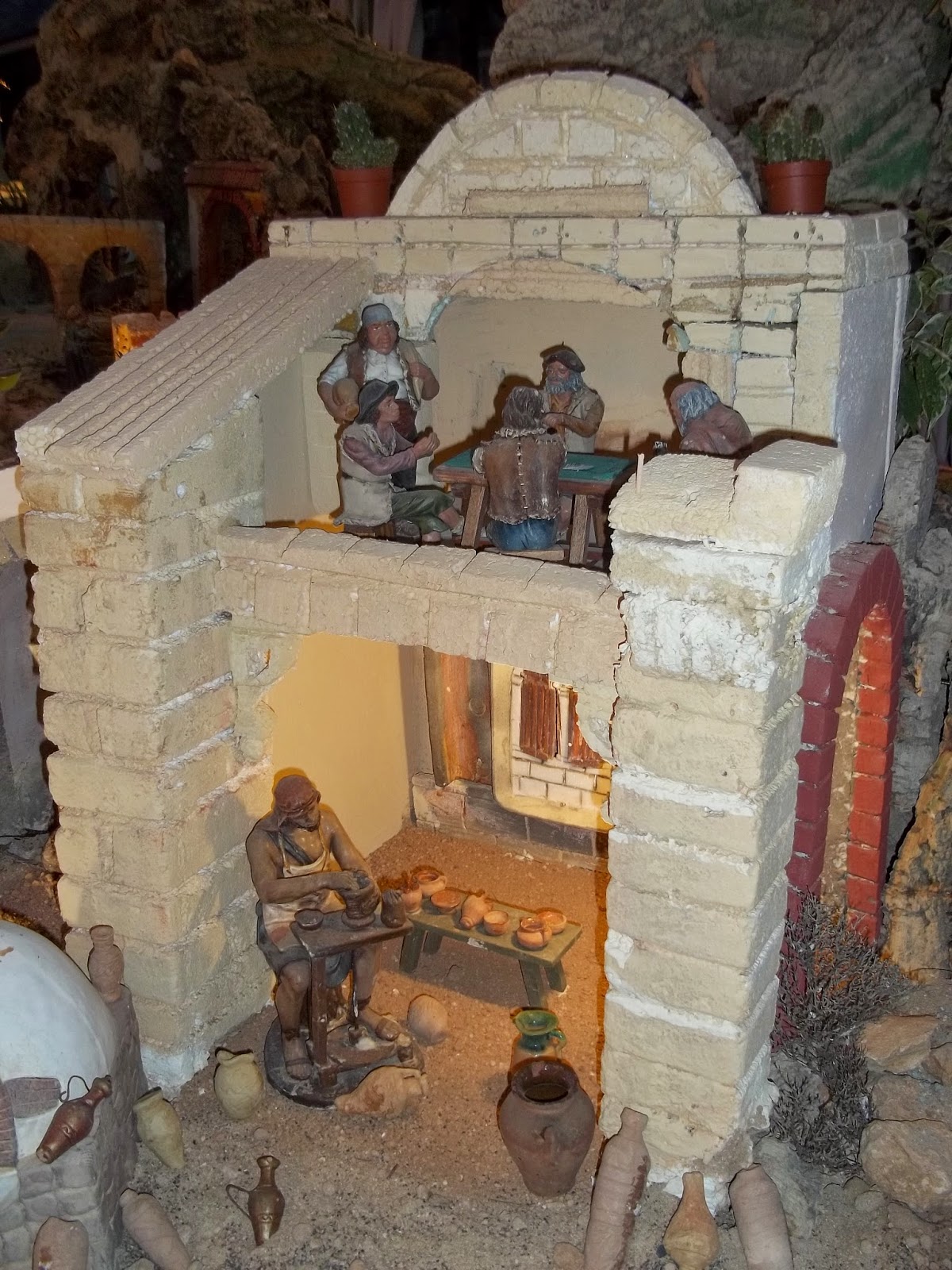 por el camino nos encontramos a los trabajadores típicos de la zona, un alfarero y... en la terraza hemos pillado descansando a unos caballeros jugando a las cartas, dejémosles con el juego y continuemos con el camino hacia...