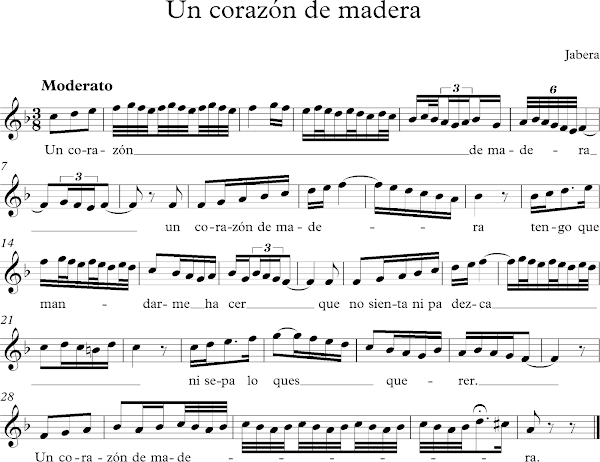 Un corazón de madera. Partitura para flauta dulce. Canción tradicional Andaluza. La incluiremos en el nivel avanzado.