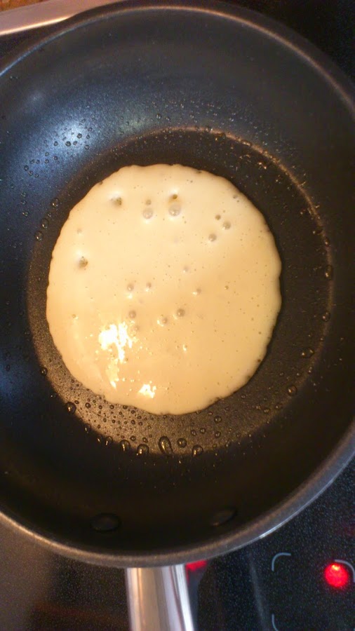 - Con una cuchara o cucharon se añade un poco de masa haciendo la forma de la tortita. Se baja el fuego y en cuanto empiece a hacer burbujitas se le da la vuelta y se deja dos o tres minutos y ya está hecha la tortita?