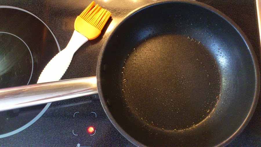 - Pincela con aceite de oliva una sarten pequeña (mejor antiadherente). Se calienta bastante el aceite.?