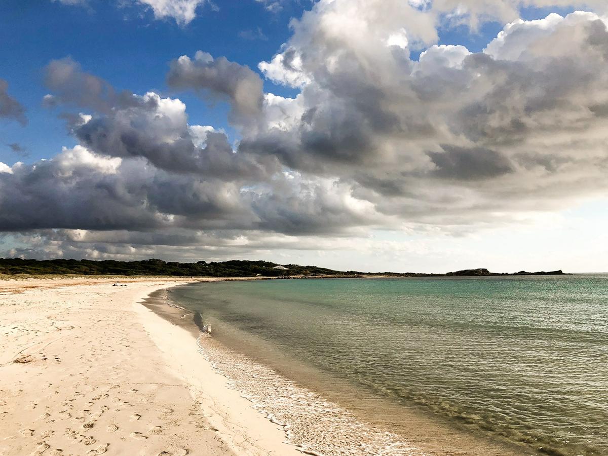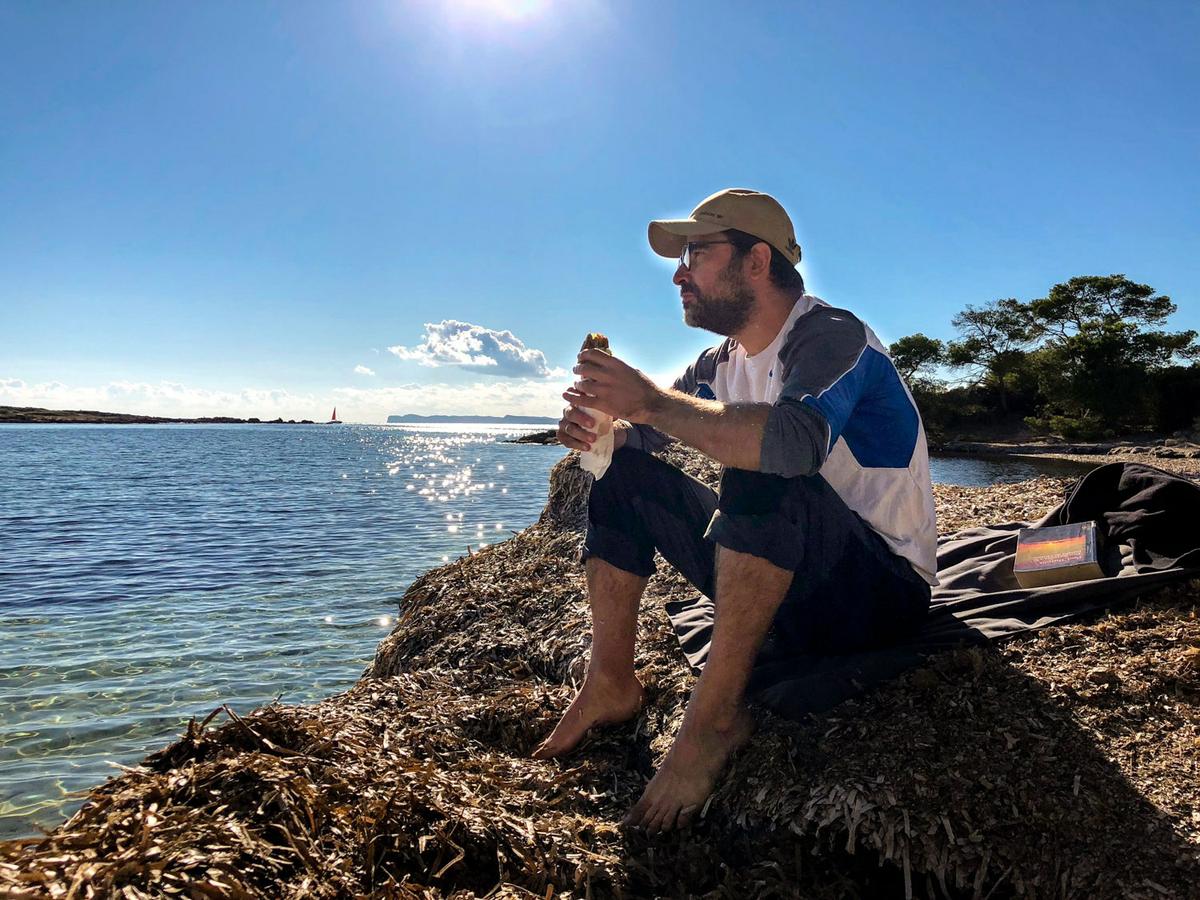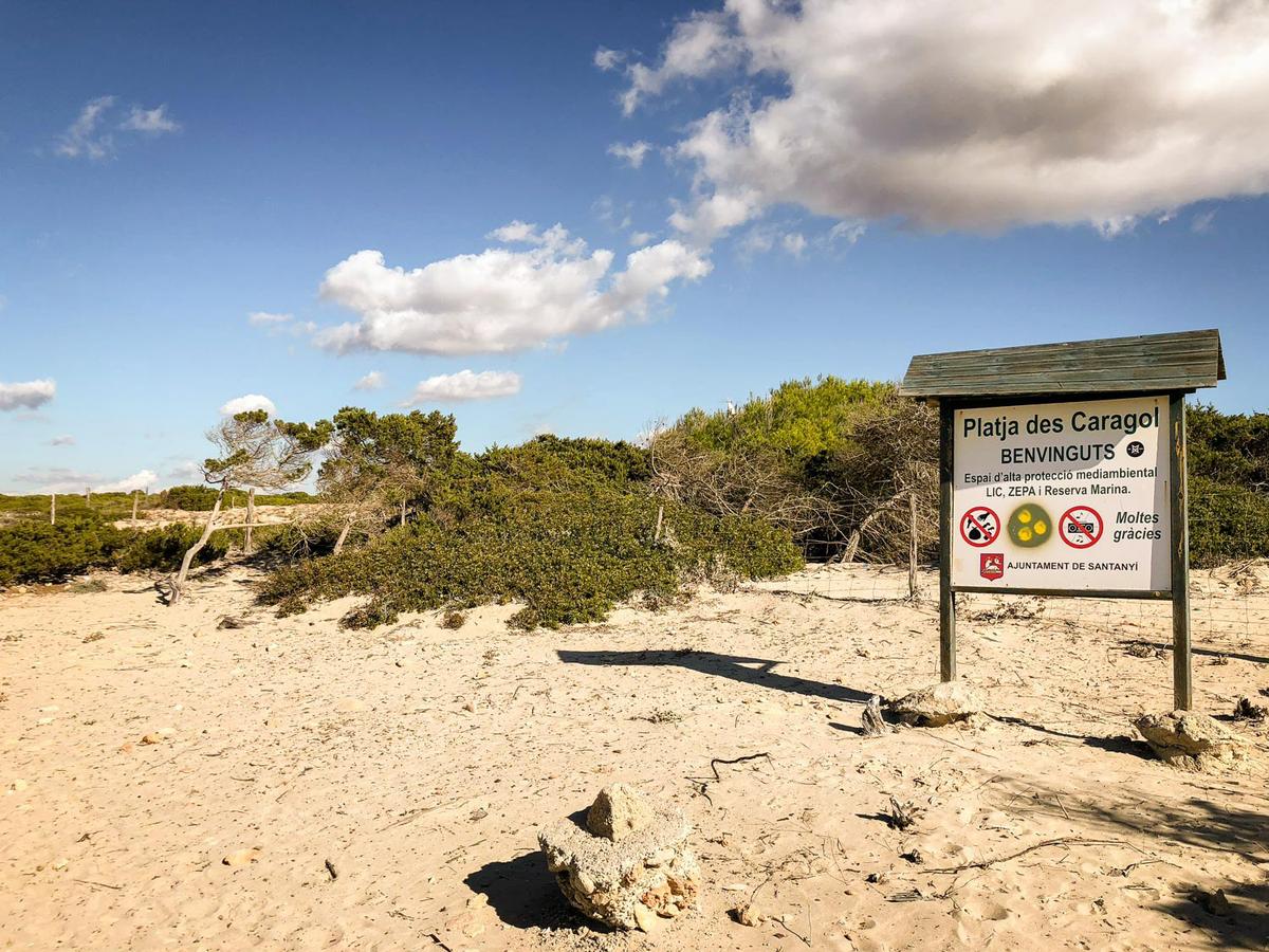 Soñando con la casa que te harías si tuvieras acceso a semejante cantera llegarás a Es Caragol, donde pensarás que sigues soñando. Decir que es una playa paradisíaca es quedarse corto. No le hace justicia. A mediados de otoño, si el cielo está despejado, salpicado de nubes de un blanco intenso y no hace viento, tendrás la sensación de que el reloj se ha detenido. Efectivamente, pensarás que te han traído el Caribe a casa: agua cristalina, arena blanca, un entorno completamente natural, nada de construcciones alrededor —salvo una casa en un costado— y, por suerte, ni un sólo barco fondeado a la vista. ¿Y esto que hace aquí?, pensarás. Y sin coger un avión… En ese tramo, hasta el otro extremo de la playa, no te mancharás los pies de arena: irás flotando.