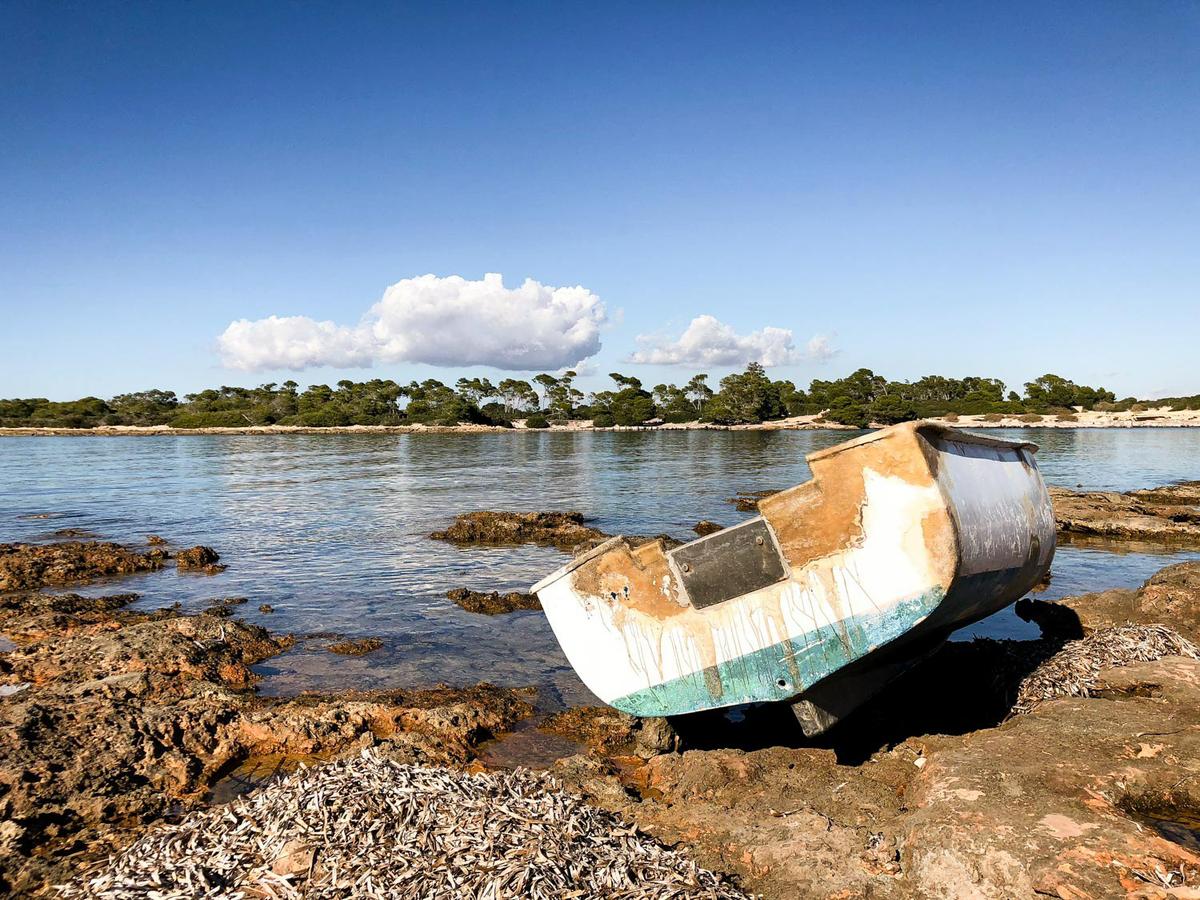 Cuando sientas que no puedes soportar más tanta calma, será el momento para emprender el camino de vuelta. Si lo haces de un tirón, no te llevará más de una hora y cuarto. Y, si te sabe a poco, puedes seguir hasta Es Carbó y volver. De regreso, habrán cambiado los colores, el mar tendrá otra cara y puede que se haya desperezado. Disfruta de la vuelta como si fuera otra ruta. Por el camino no entrarás fitas, esos pequeños montículos de piedras que levanta la gente para señalizar el camino. No son necesarias, ni para la ruta ni para el entorno. Tampoco lo deberían ser los plásticos, pero me temo que es demasiado tarde para eso. La entrada a Es Caragol por el sur está plagada de pequeños residuos, miles de motas de colores entre granos de arena que evidencian un claro síntoma: el mar no los asimila bien.