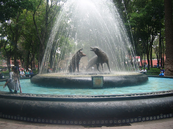La fuente de Coyoacán, verdaderamente representativa con sus dos coyotes al centro.