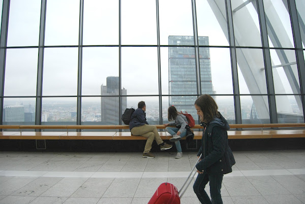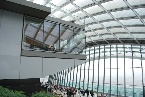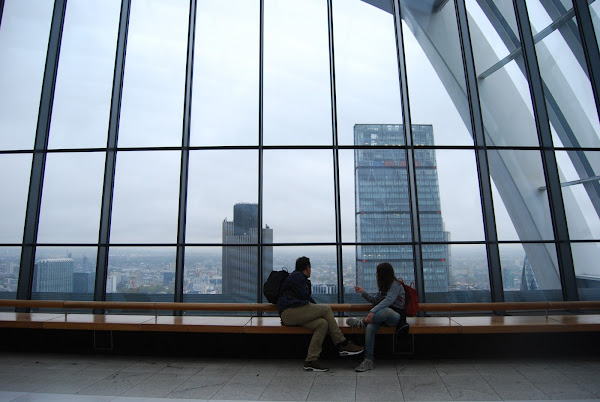 Este post se debería llamar un jardín en el cielo de Londres, y es que teníamos la visita programada el único día que llovió de los que estuvimos allí. Así que mala suerte por un lado porque nos perdimos parte de las vistas, pero la luz de los días de lluvia para mí (los genes gallegos...) tiene un encanto especial. Las nubes son un filtro natural para las fotos, así que aunque no pudimos ver el final de la ciudad, aprovechamos para pasear por este jardín a 160 metros del suelo, en el rascacielos que para mis hijas era una "seta" y para los londinenses un walkie-talkie :-).